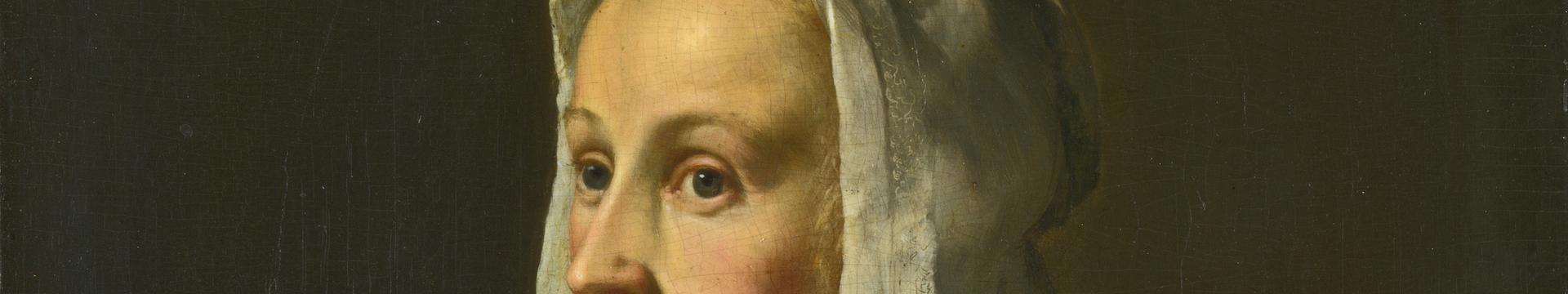 Cunera van der Cock married the artist Frans van Mieris about a year before he painted this portrait of her. About 120 of his pictures still exist, but although Cunera appears in about a quarter of them, very few are actual portraits of her. The rest are genre paintings in which she is playing a...